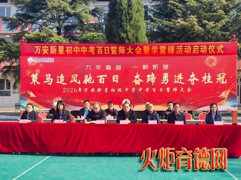 3月12日,洪洞县万安新星初中在校园操场举行中考百日誓师大会暨学雷锋活动启动仪式。全体师生齐聚一堂,在庄严的国歌声中拉开序幕。